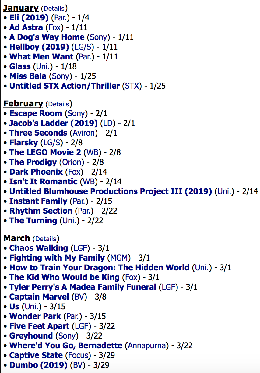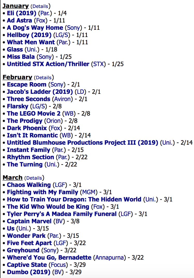 2019 Movies Complete List Of All Movies In Theaters 2019